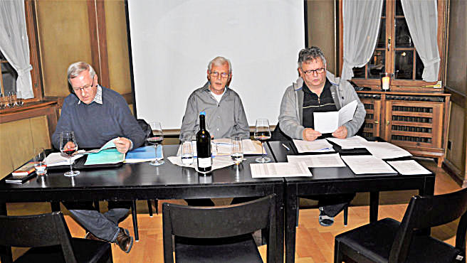 Am Vorstandstisch: Werner Engler Aktuar, Peter Clerici Co Präsident, Josef Hutter Co Präsident